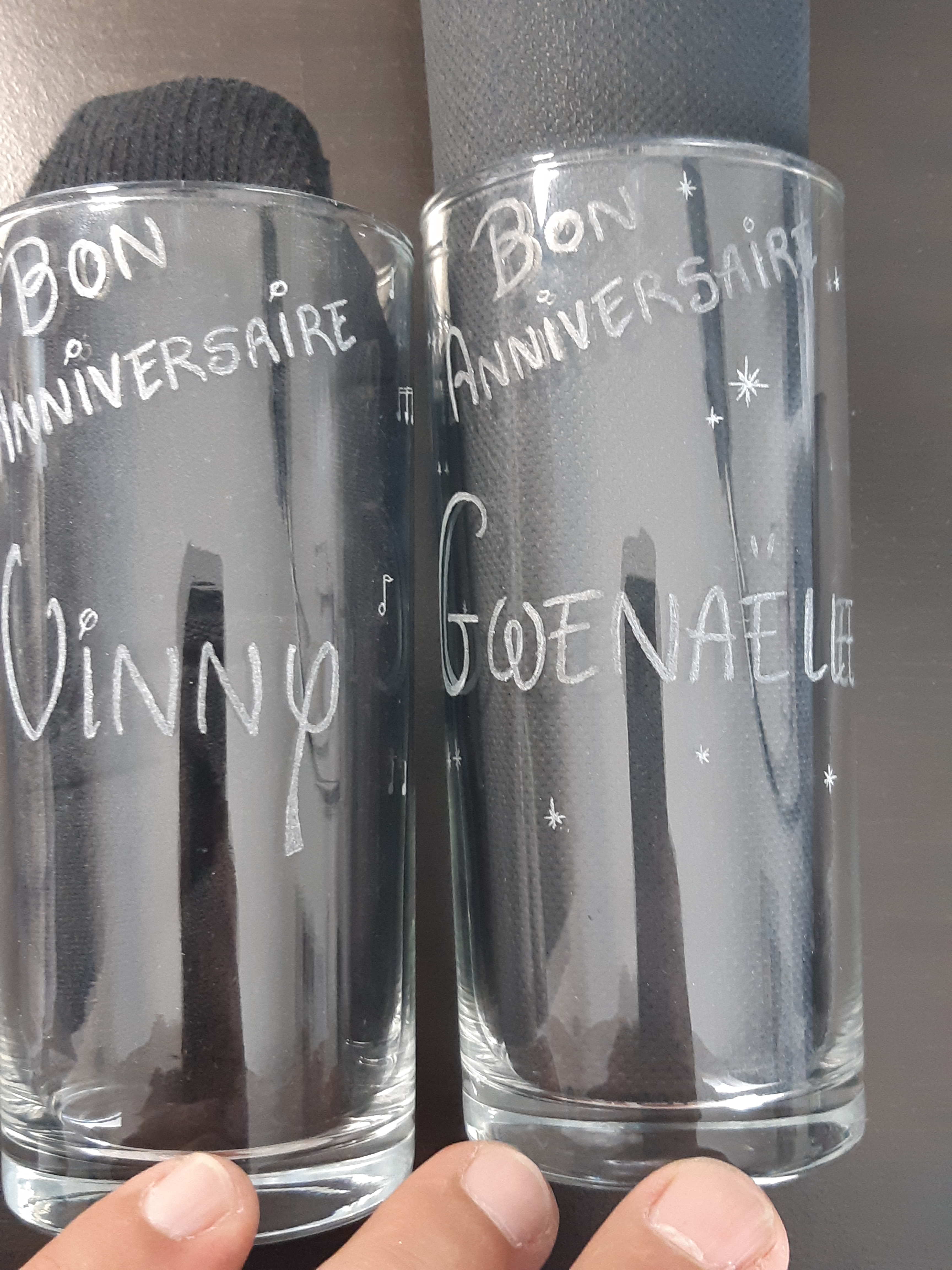 L’Atelier de gravure, des Coups de pouce de Bruno, c’est la réalisation de vos verres personnalisés, gravées entièrement à la main. Tous les bénéfices sont reversés à l’association, au profit des enfants gravement malades ou en situation de handicap, et nous permettent de financer les coups de pouce, les journées récréatives, l’arbre de noël.